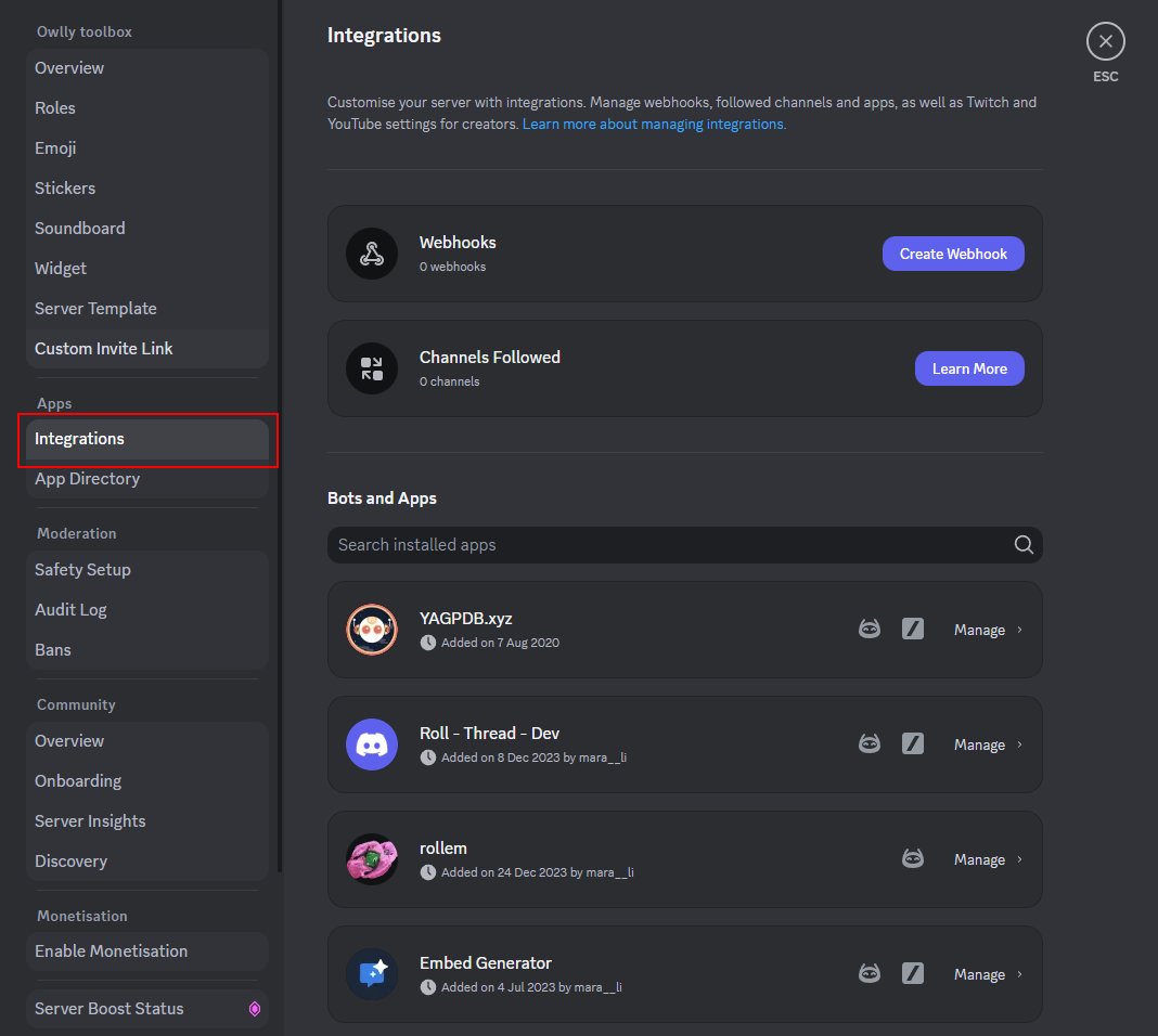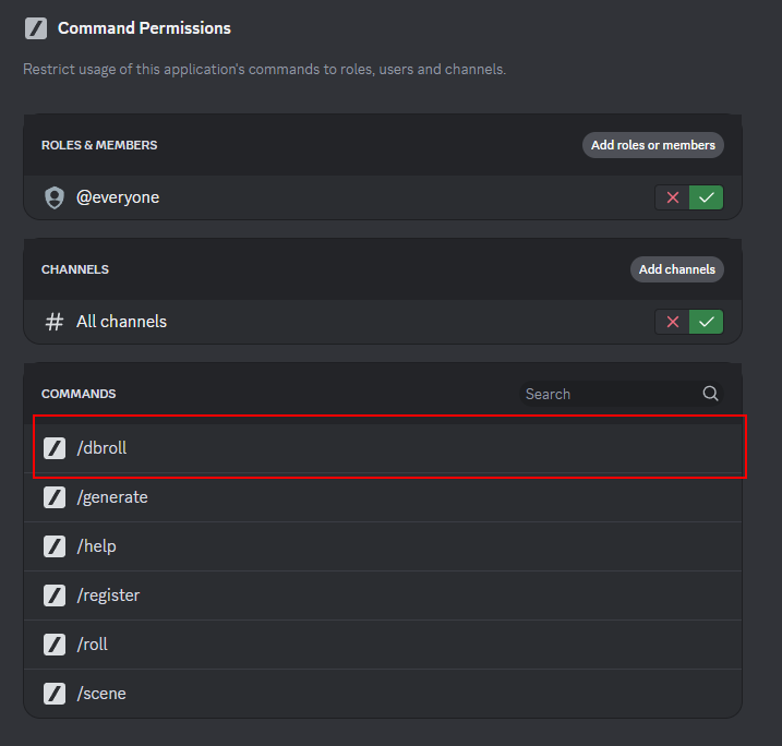 Vous pouvez restreindre l'utilisation des commandes à certains utilisateurs ou rôles en suivant les étapes ci-dessous :